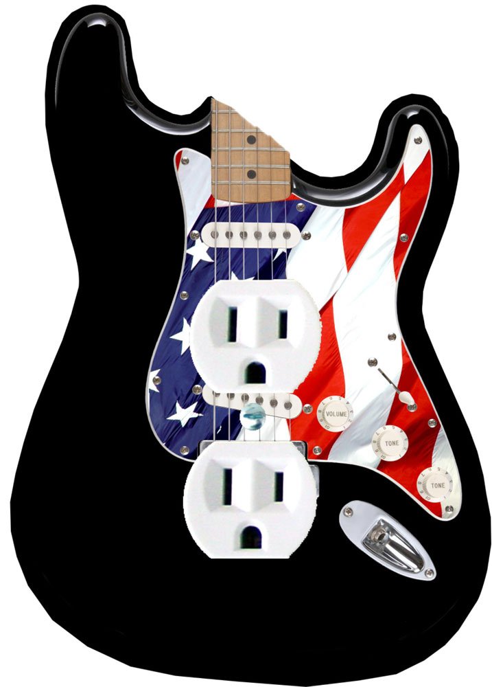 Black Electric Guitar Duplex Outlet Cover